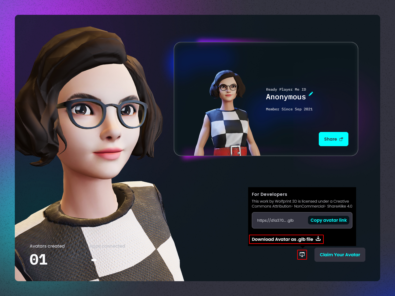 Fortunately, you can export a model directly from ReadyPlayerMe for usage anywhere with the right amount of effort.
